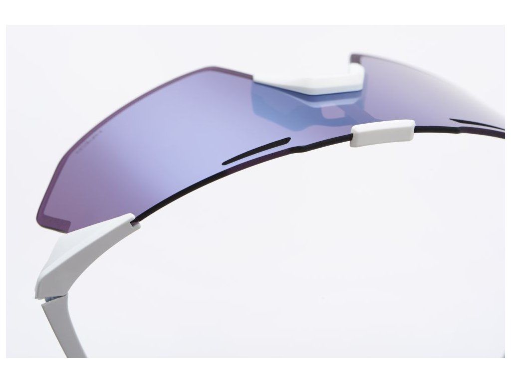 Model 100% HYPERCRAFT SQ v matnej bielej úprave predstavuje dokonalú synergiu štýlu a výkonu. Vďaka revolučnému materiálu UltraCarbon™ sú tieto bezrámové okuliare neuveriteľne ľahké, no dostatočne pevné na to, aby zvládli najnáročnejšie pretekárske nasadenie. Verzia SQ ponúka kompaktnejší, hranatejší tvar šošovky, ktorý perfektne sedí na stredných a menších tvárach. Šošovka HiPER Blue Multilayer je navrhnutá tak, aby filtrovala svetlo pre zvýraznenie kontrastu a sýtosti farieb, čím vám poskytuje krištáľovo čistý pohľad na každú nerovnosť vozovky.