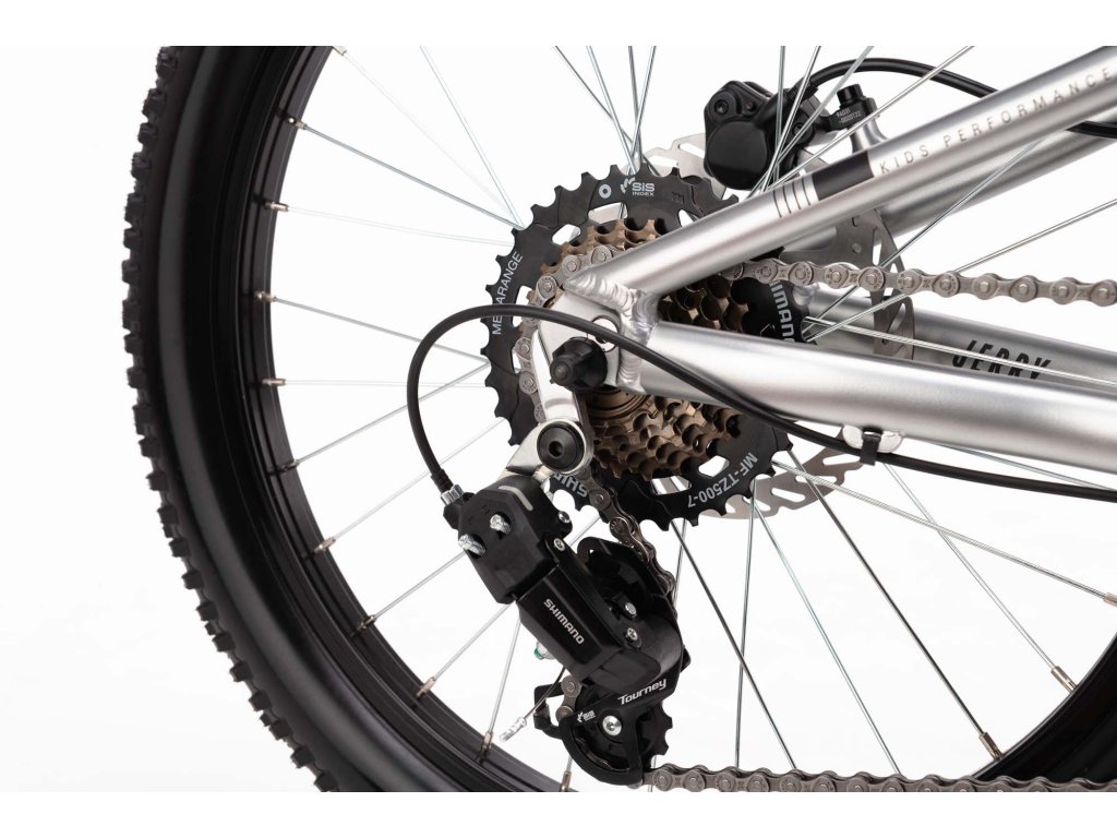 O jednoduché a intuitívne radenie sa stará 7-rýchlostná sada Shimano Tourney s ovládaním otočným gripom. Bezpečnosť a kontrolu nad rýchlosťou zaisťujú výkonné hydraulické kotúčové brzdy TEKTRO HD, ktoré sú v tejto kategórii detských bicyklov skvelým nadštandardom. Bicykel s 20" kolesami a agresívnym osadením je ideálny pre malých bikerov na traily a v parkoch.