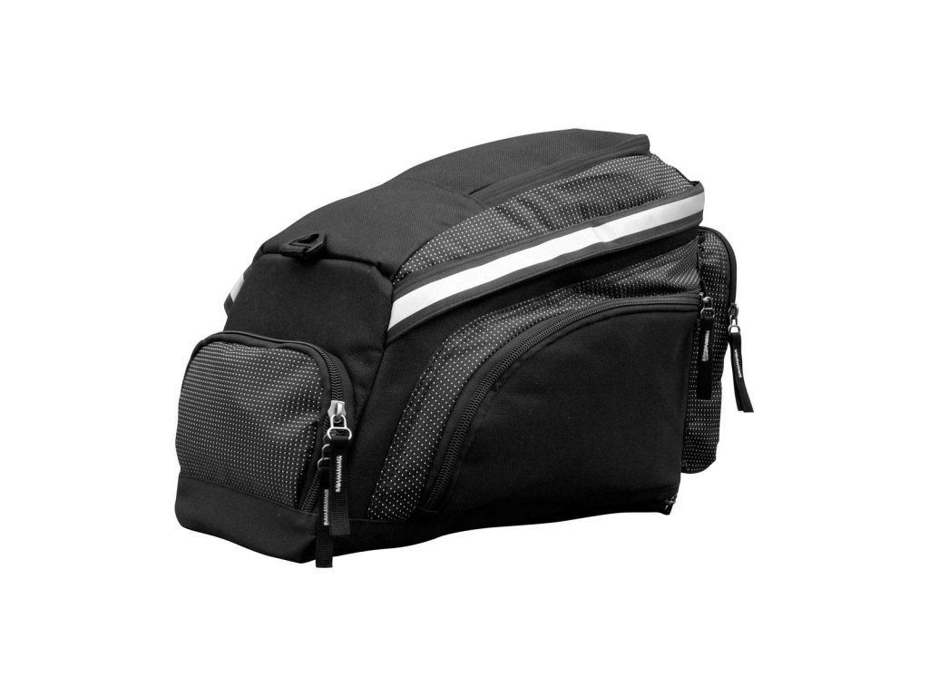 Objemná kapsa na nosič s množstvom postranných vreciek a priehradiek. Horné veko po otvorení umožňuje pohodlný prístup do hlavného priestoru kapsy a umožňuje ľahkú manipuláciu aj s väčšími predmetmi. Vnútorný priestor vybavený dvomi sieťovými vreckami, jedno na bočnej stene a druhú na hornom veku. K dispozícii je aj zadné vrecko na uloženie drobností alebo dokladov. Vnútorný priestor je mäkký a vynikajúco ochráni aj krehké predmety ako napríklad fotoaparát. Ľahko prístupné vrecko na hornom veku, postranné vrecká a zadné vrecko s príveskom na kľúče slúžia na uschovanie drobností, ktoré majú byť prístupné okamžite, bez nutnosti hľadania v hlavnom priestore. Prívesky na bežcoch zipsov výrazne uľahčuje časté otváranie a zatváranie. Uchytenie kapsičky na nosič je zabezpečené tromi dostatočne dlhými Velcro páskami. Reflexný pásik vedený okolo hornej časti zvyšuje aj bočnú viditeľnosť za zhoršených svetelných podmienok. Kapsička je vyrobená z odolného a húževnatého Polyesteru 600D, ktorý zabezpečuje dlhú životnosť aj pri častom používaní. Súčasťou kapsy je poťah proti dažďu v neónovej žltej farbe s reflexným pásom.Rozmer: 33x16,5x17cm
