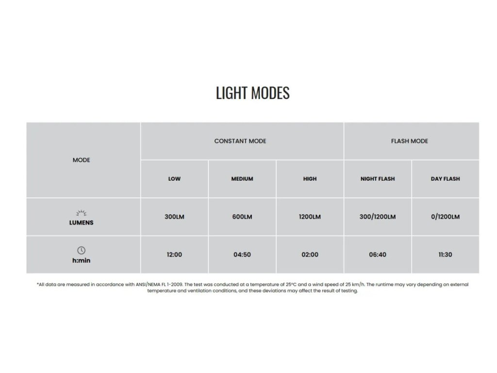 - Výkon 1200 LM – tri režimy intenzity pre optimálne osvetlenie cesty