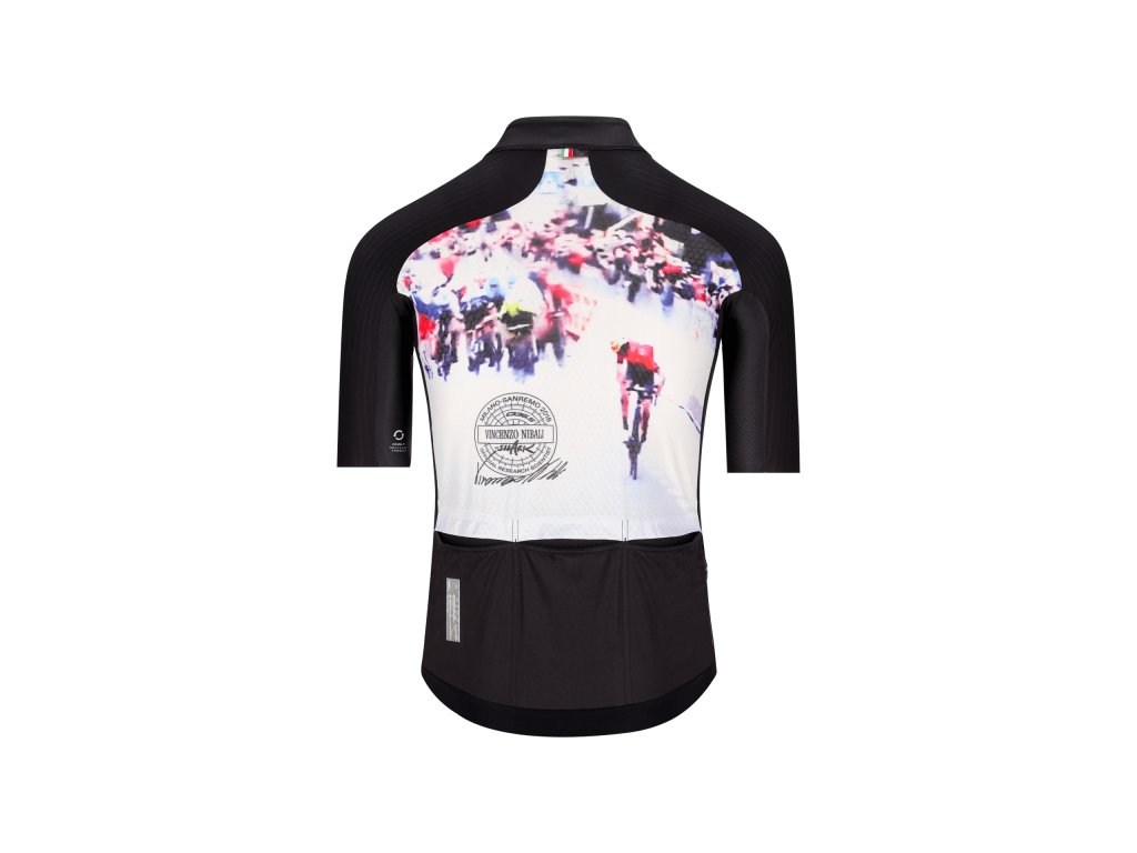 Oslava legendy a výkonu v jednom. Tento dizajn venovaný víťazstvu Vincenza Nibaliho na Milano–Sanremo 2018 ponúka špičkovú ventiláciu v extrémnych podmienkach. Kombinuje ultraľahký materiál (~112 g) s aerodynamickým raglan strihom a rebrovanými rukávmi, čo znižuje odpor vzduchu bez obmedzenia pohybu.