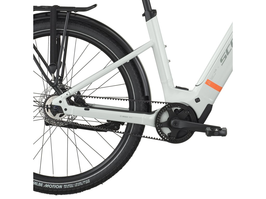 SCOTT Sub Tour 20 Wave je ideálny elektrobicykel do mesta a pre každého, kto ocení pohodlný nízky nástup, bezúdržbový remeňový pohon a tichý motor Bosch. Vďaka dizajnu rámu Wave sa ľahko nasadá aj zosadá a bicykel tak bez problémov využije celá rodina.