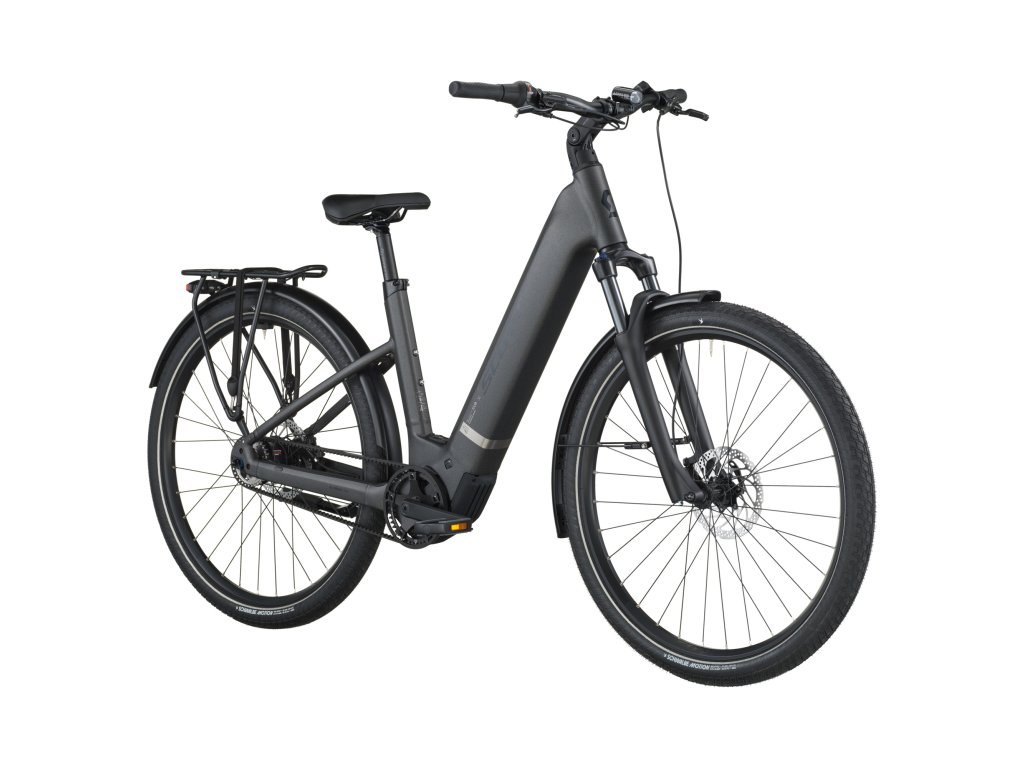 Rám s horným vyberaním batérie je vhodný pre viacero jazdcov v domácnosti – perfektné riešenie, ak chcete bicykel zdieľať. S vnútorným radením Nexus Inter 5e a remeňovým pohonom Gates CDC sa nemusíš starať o čistenie reťaze či mazanie. O komfort sa postará odpružená vidlica SR Suntour NVX32 so 100 mm zdvihom a balonové plášte Schwalbe Big Apple.